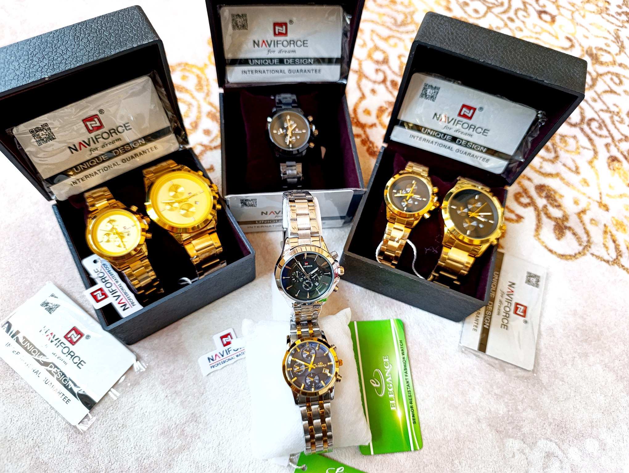 ساعت مچی برند ناویفروس اصلی دارای کارت ضمانت : مقدار ویژگی در دو رنگ صفحه مشکی و طلایی